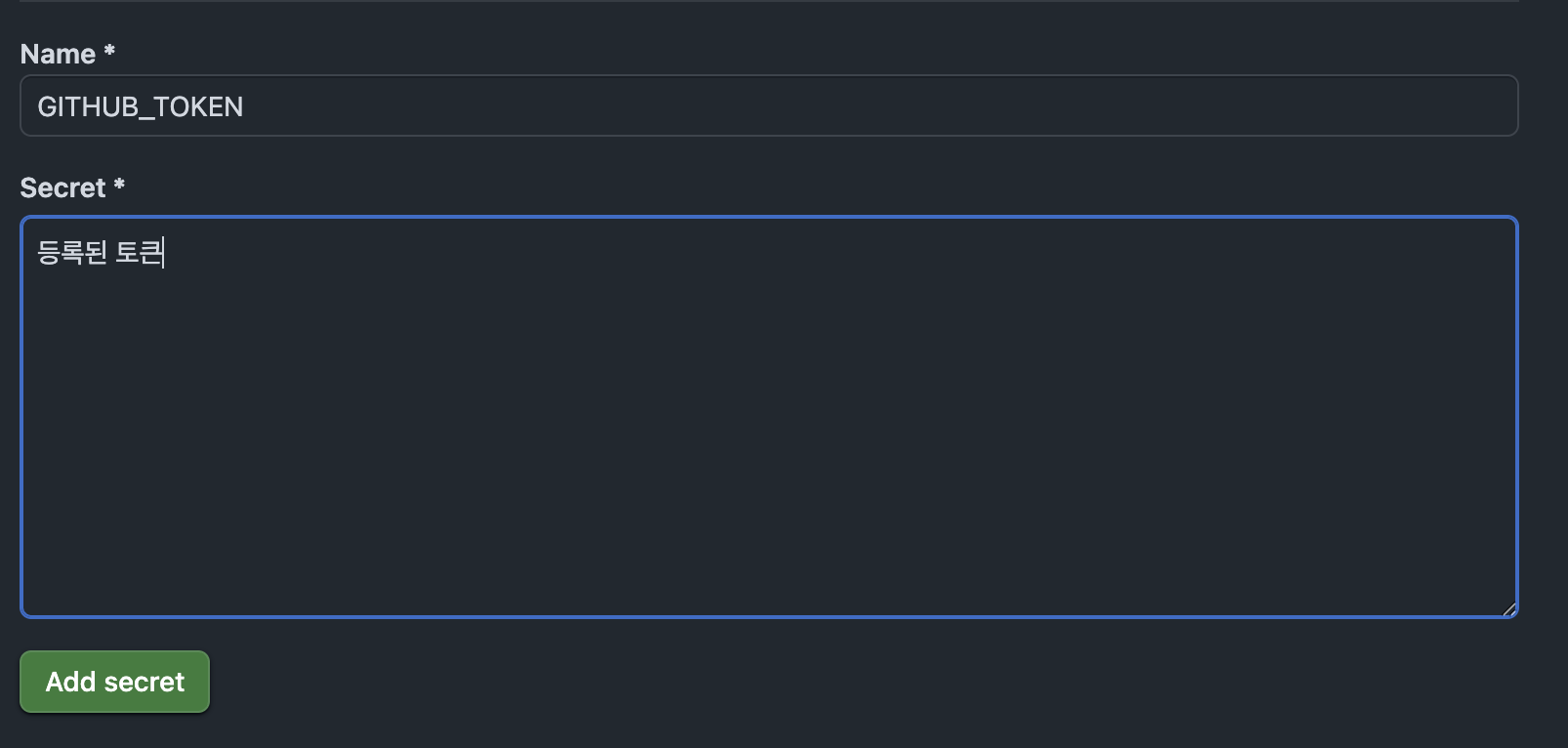 GITHUB_TOKEN 네이밍은 되지 않으니 참고해주세요 :)